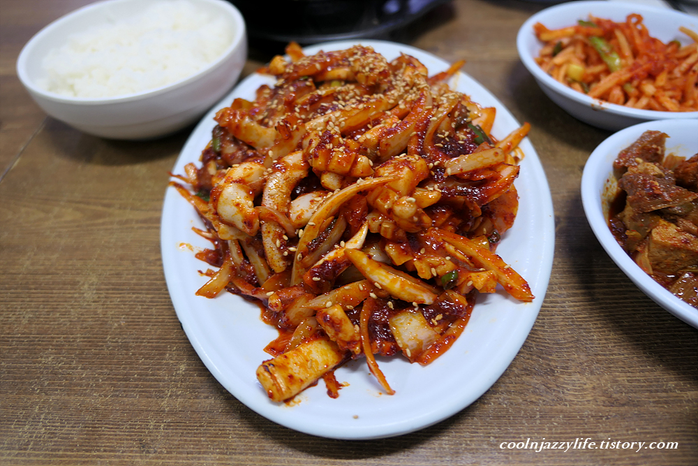 아마도 내가 먹어본 오징어 볶음 중 순위권의 맛이다.