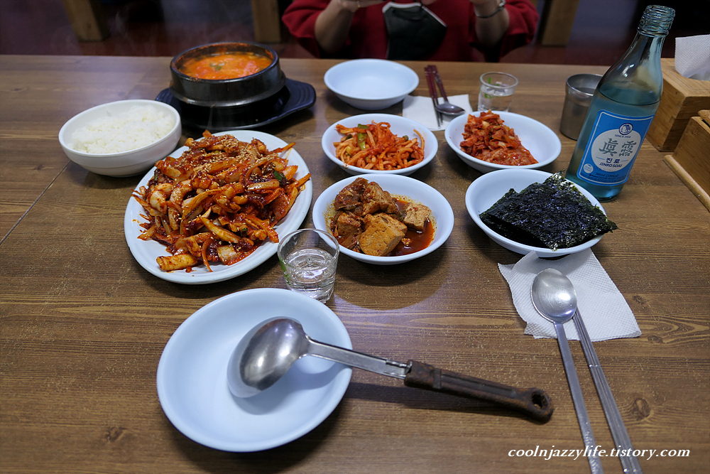 잠시 후 오징어 볶음과 순두부 등장.