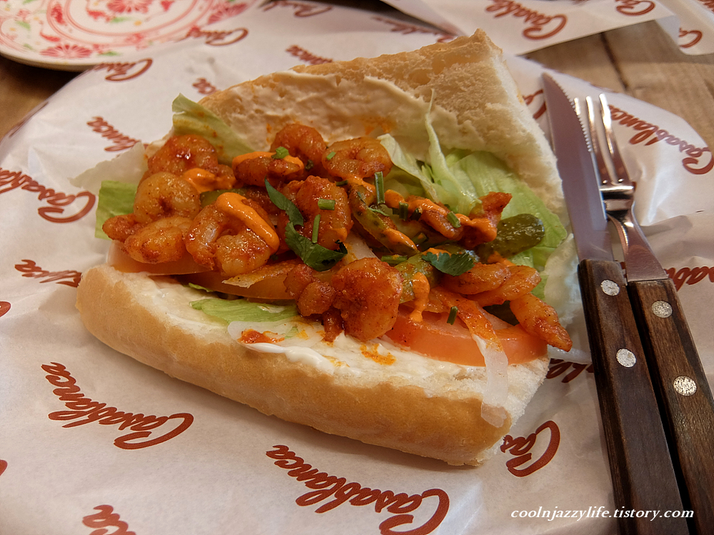 내가 주문한 쉬림프 샌드위치는 매콤하니 맛이 좋았다.